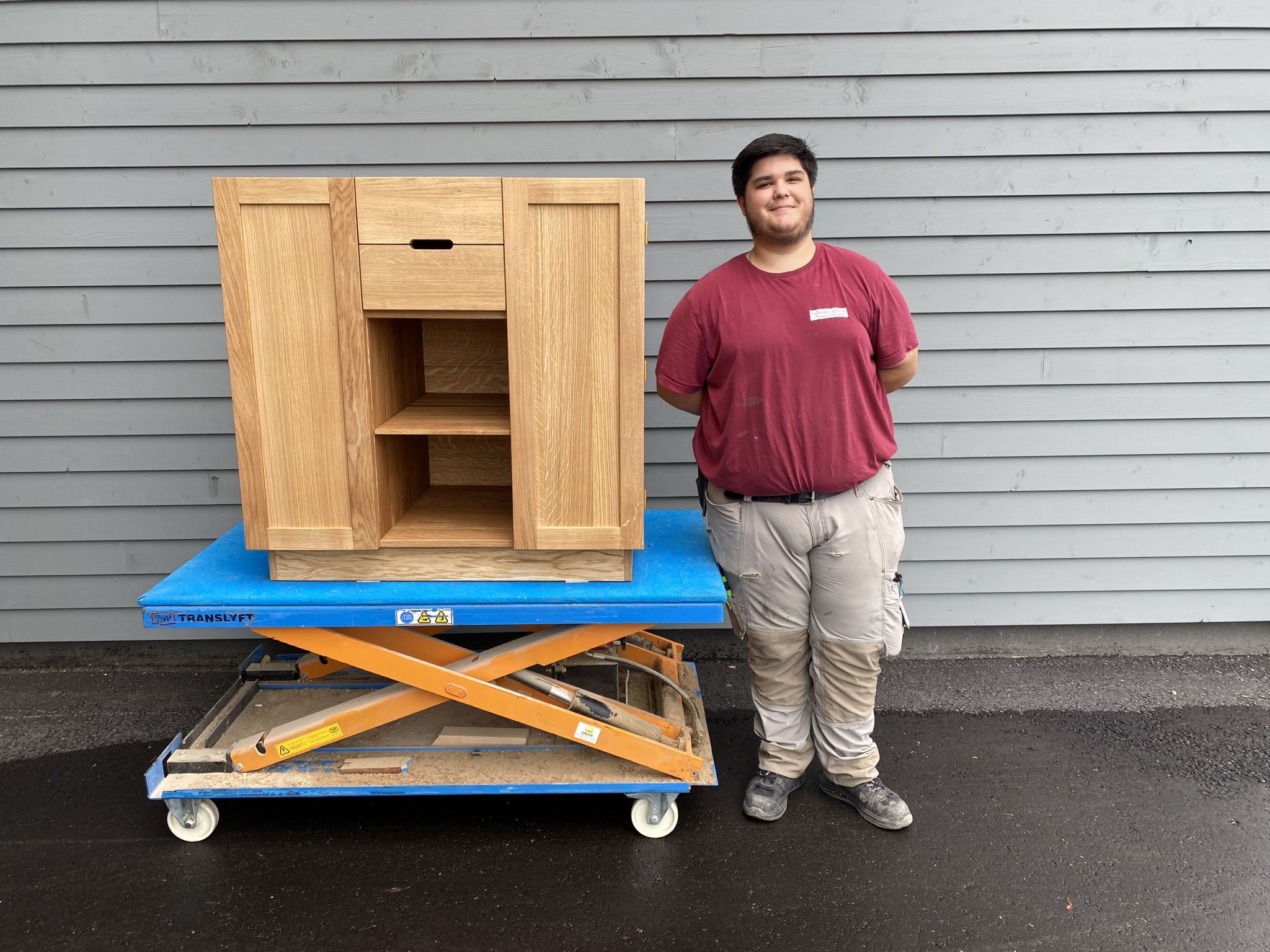 Unser Schreiner-Azubi Raphael hat seine Ausbildung mit seinem beeindruckenden Gestellenstück beendet!