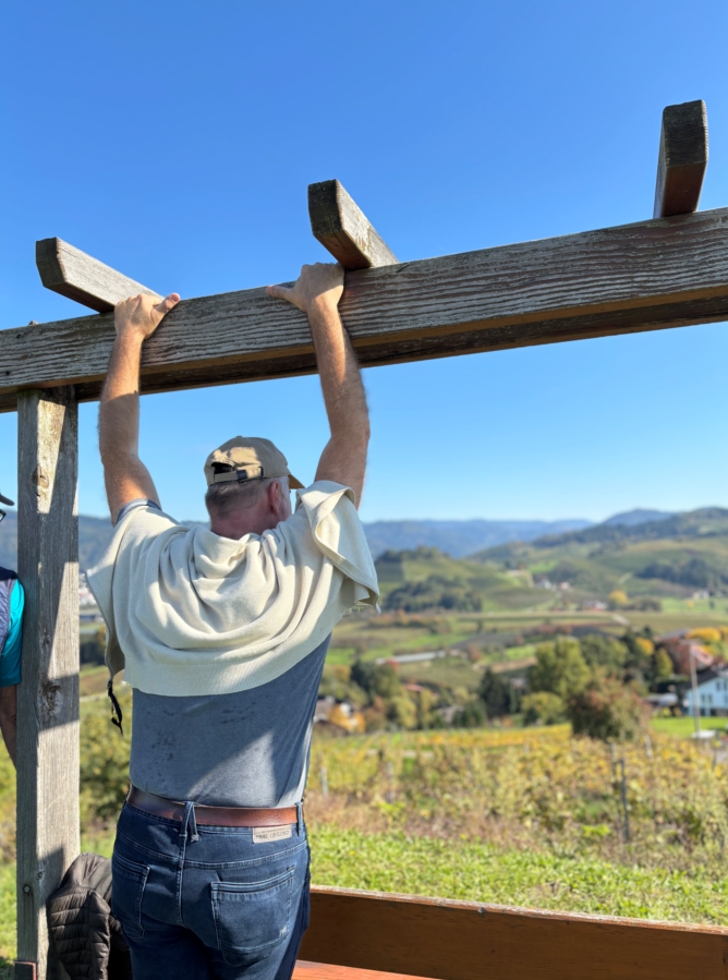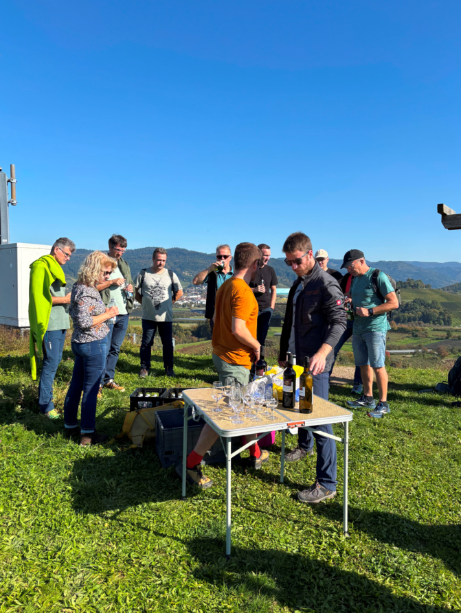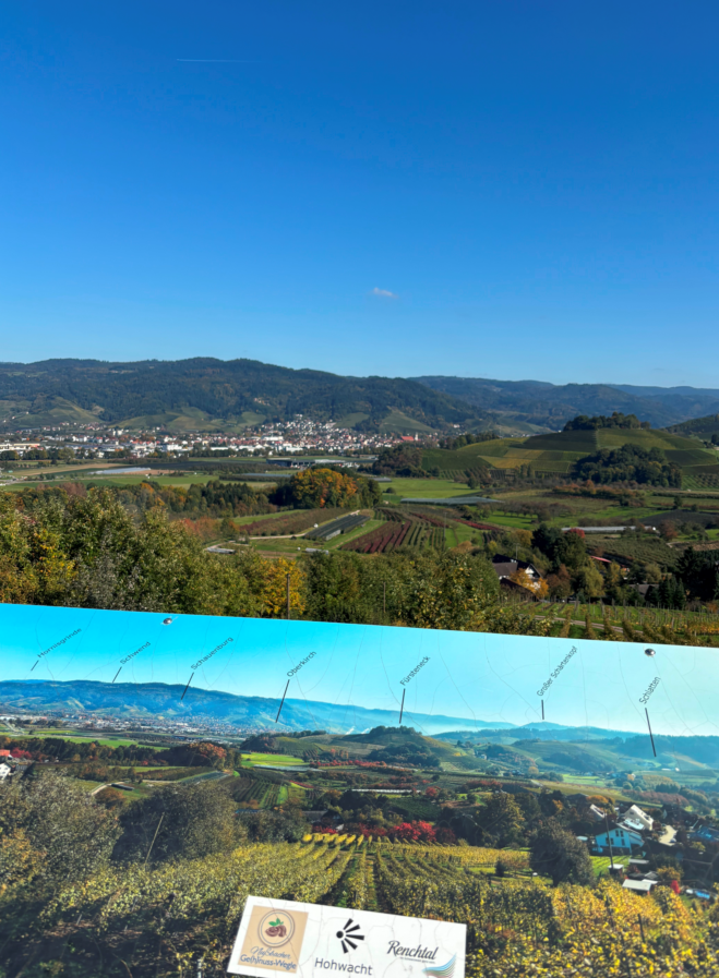 Zwischendurch gab’s eine wohlverdiente Rast mit herrlicher Aussicht über Oberkirch – sogar mit Blick bis zu unserer Firma!