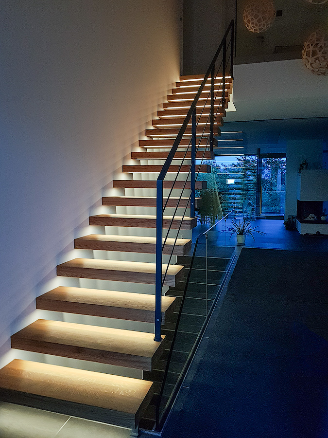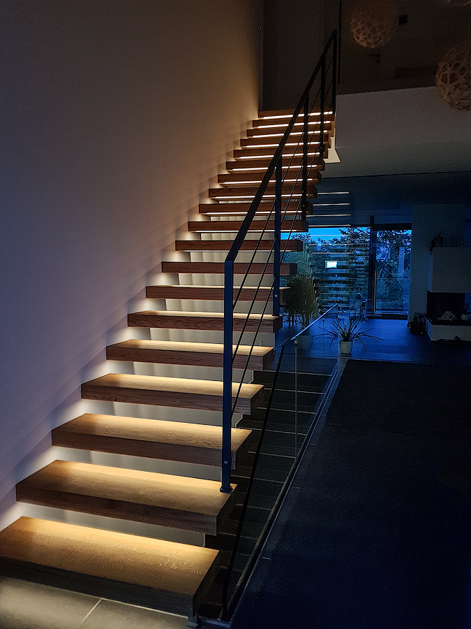 Immer öfters integrieren wir in unsere Treppen LED-Lichtsysteme welche