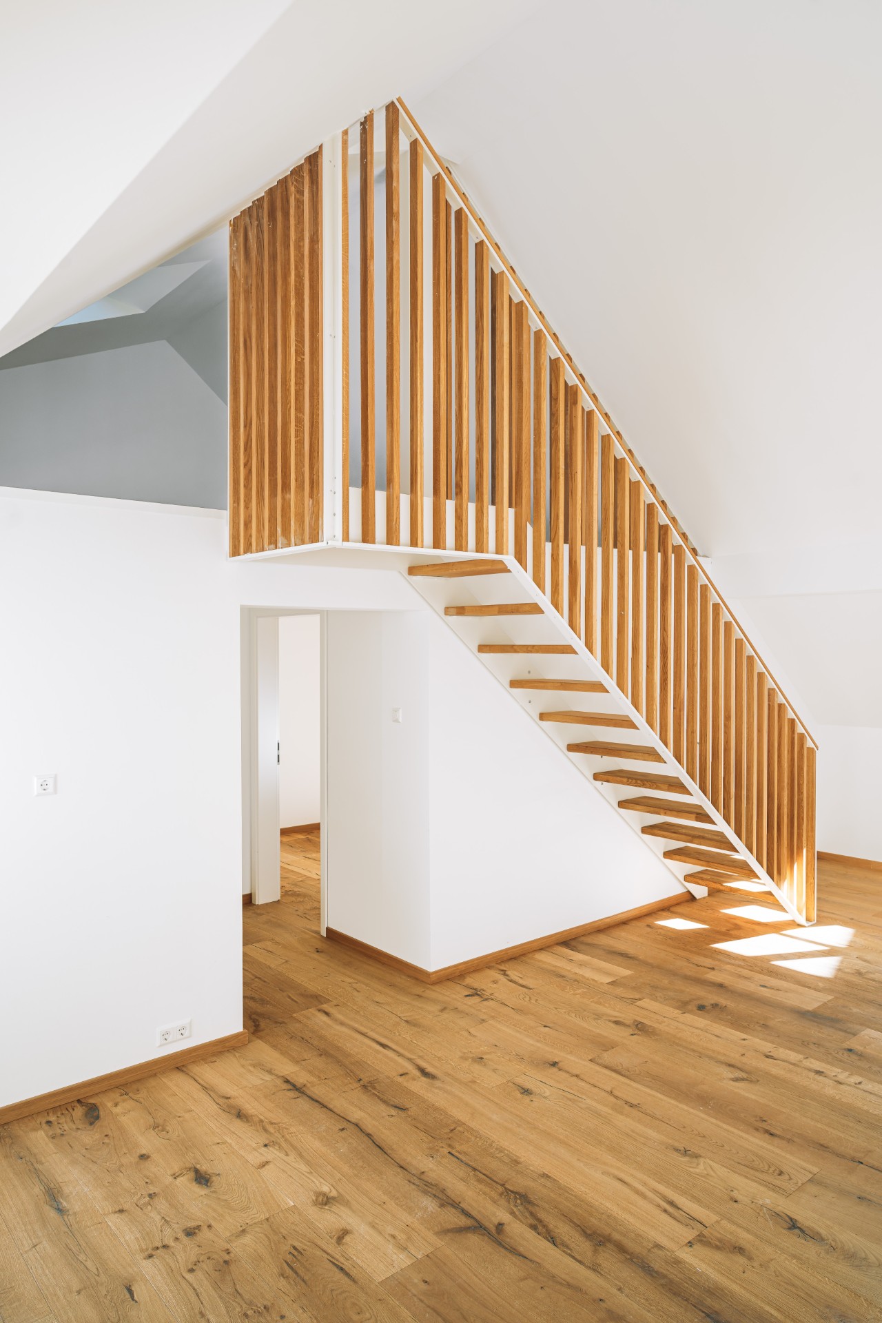 Durch sorgfältige Material- und Oberflächenabstimmung konnte eine harmonische Einheit geschaffen werden – die Treppe wirkt nicht als separates Bauteil, sondern als integraler Bestandteil der Architektur.